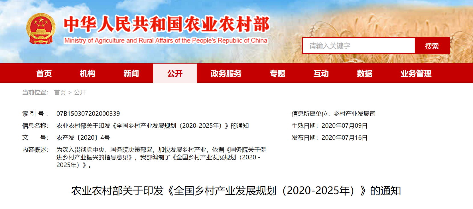 去年7月9日,農村農業(yè)部正式下發(fā)《全國鄉(xiāng)村產業(yè)發(fā)展規(guī)劃(2020-2025年)》(以下簡稱《規(guī)劃》?!兑?guī)劃》稱,近年來,農村創(chuàng)新創(chuàng)業(yè)環(huán)境不斷改善,新產業(yè)新業(yè)態(tài)大量涌現,鄉(xiāng)村產業(yè)發(fā)展取得了積極成效。但存在產業(yè)鏈條較短、融合層次較淺、要素活力不足等問題,亟待加強引導、加快發(fā)展。根據《國務院關于促進鄉(xiāng)村產業(yè)振興的指導意見》要求,為加快發(fā)展以二三產業(yè)為重點的鄉(xiāng)村產業(yè),制定本規(guī)劃。