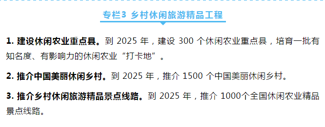 建設休閑農業(yè)重點縣。以縣域為單元,依托獨特自然資源、文化資源,建設一批設施完備、業(yè)態(tài)豐富、功能完善,在區(qū)域、全國乃至世界有知名度和影響力的休閑農業(yè)重點縣。