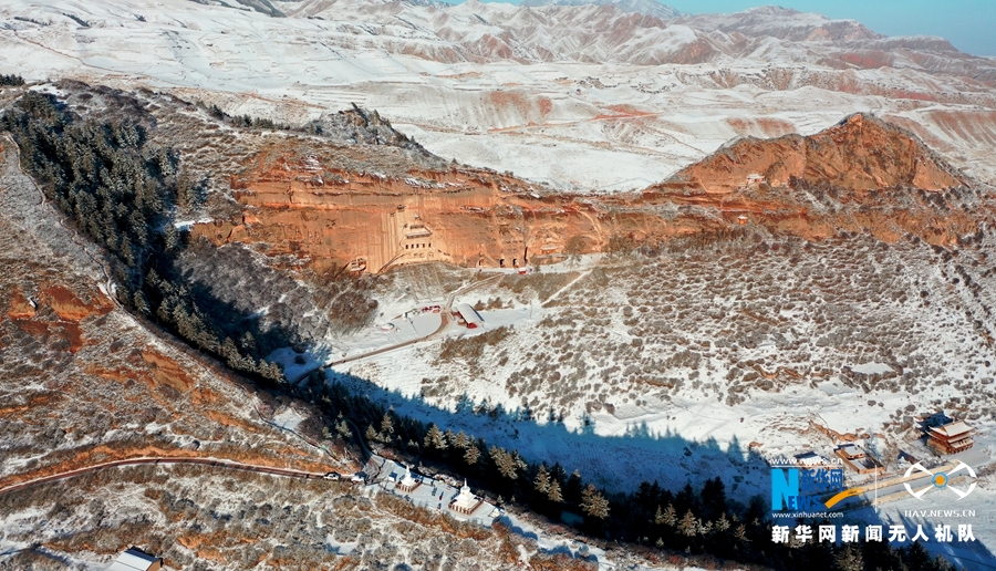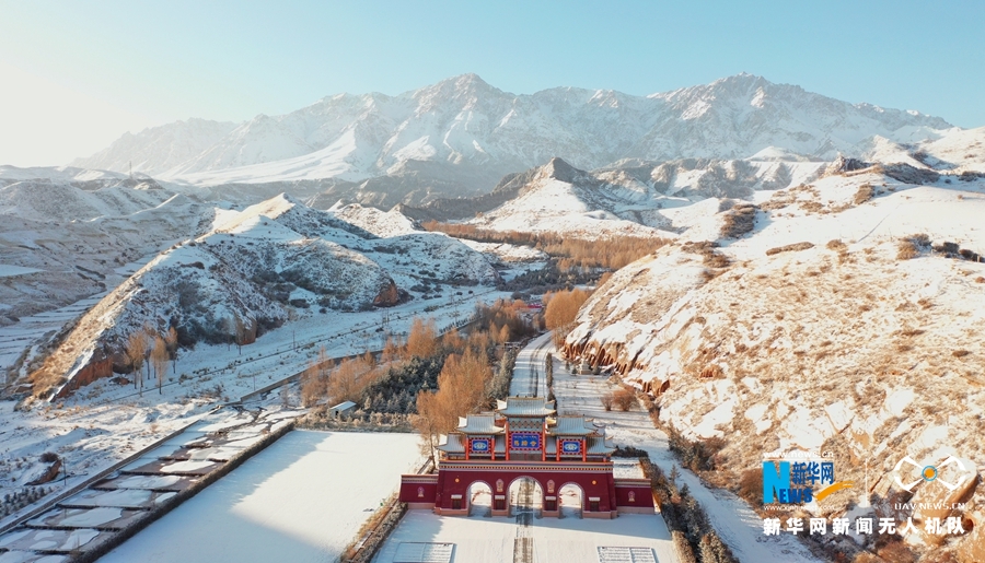 這是11月21日航拍的甘肅省張掖市肅南裕固族自治縣馬蹄寺風(fēng)景區(qū)雪景。新華網(wǎng)發(fā)(楊永偉 攝)