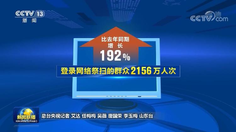 央視網(wǎng)消息(新聞聯(lián)播):今年清明節(jié)假期,我國旅游市場(chǎng)供給豐富、安全形勢(shì)總體平穩(wěn),網(wǎng)絡(luò)祭掃人次明顯增加。