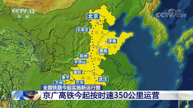 京廣高鐵從北京至武漢這一段,今天起按時(shí)速350公里運(yùn)營,新型復(fù)興號智能動車組列車上線。從北京到武漢,旅行時(shí)間縮短到4小時(shí)以內(nèi)。