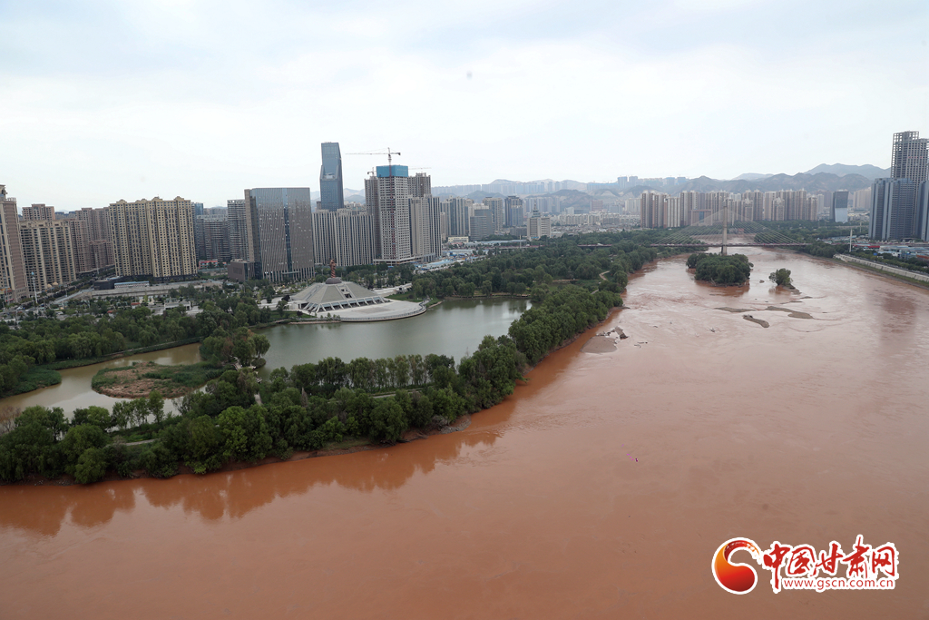 近日,受降水天氣影響,黃河蘭州段仿佛成“紅河”,河水與沿岸蔥郁的濕地公園更顯風(fēng)致,半是青綠半是黃,別有一番情趣。
