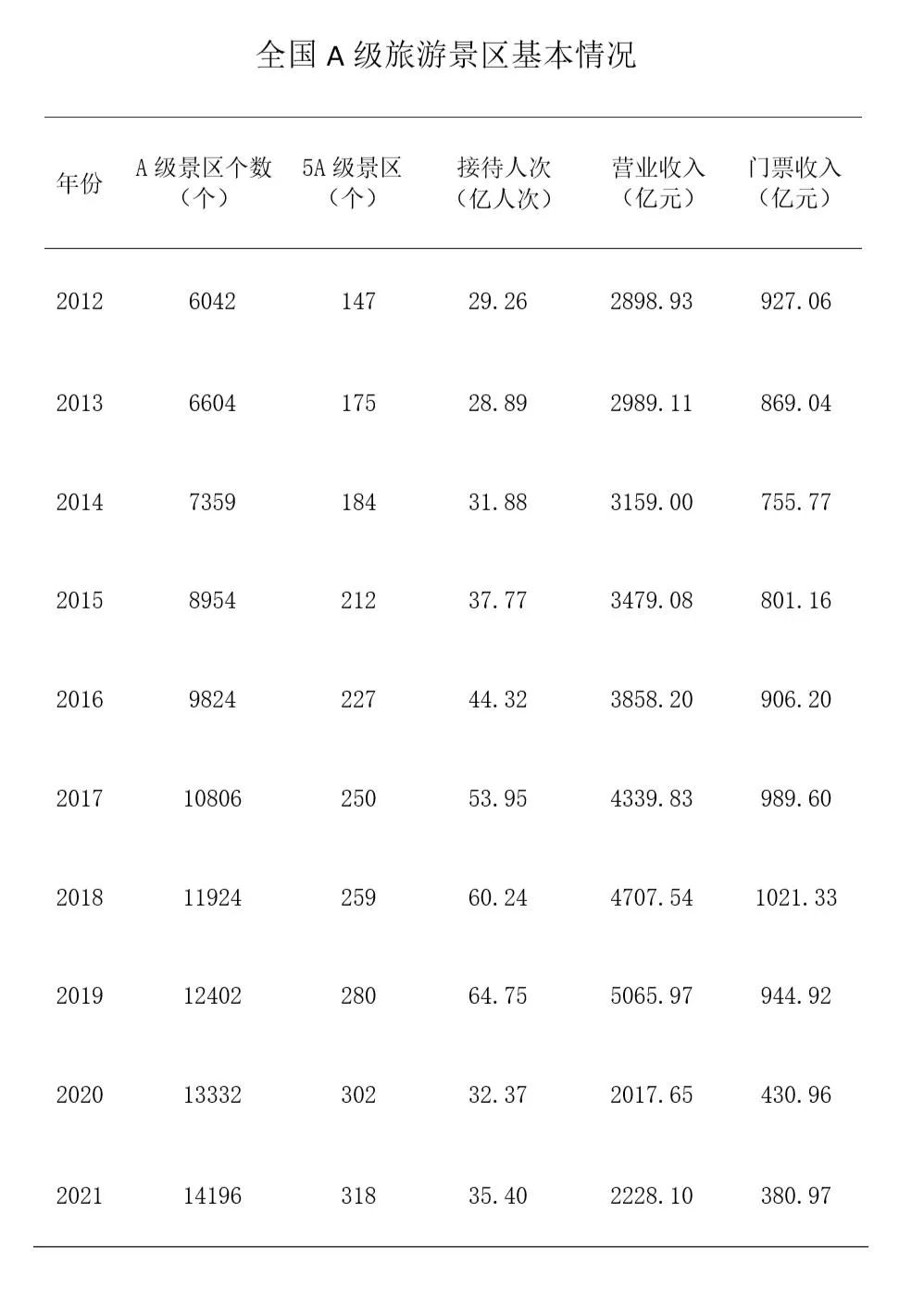 統(tǒng)計數(shù)據(jù)顯示,2021年全國A級旅游景區(qū)個數(shù)達(dá)到14196個,全國A級旅游景區(qū)接待游客35.4億人次。