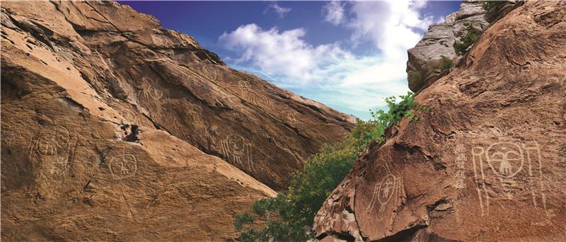 寧夏巖畫以賀蘭山巖畫為代表,鑿刻年代從石器時代到歷史發(fā)展的各個階段,延續(xù)時間長,體現(xiàn)了古人與石的對話,被譽為“史前人類的藝術(shù)長廊”“刻在石頭上的史詩”。寧夏巖畫為中國北方巖畫的代表,約有4萬余幅,廣泛分布于賀蘭山東麓和衛(wèi)寧北山、香山、青銅峽牛首山,記錄了遠古先民狩獵、耕作、放牧、祭祀、圖騰等生產(chǎn)生活場景。北魏地理學(xué)家酈道元對賀蘭山巖畫描述“石之上自然有紋,盡若虎馬之狀,粲然成著,類似圖焉,故亦謂之畫石山也。”寧夏巖畫是多彩的畫,是無聲的歌,是無韻的詩,是形象的史,承載著古代賀蘭山區(qū)多民族交往交流交融的集體記憶,是各民族從“各美其美、美美與共”到“多元一體、休戚與共”的中華民族共同體意識的原始物證?,F(xiàn)為國家4A級旅游景區(qū)。