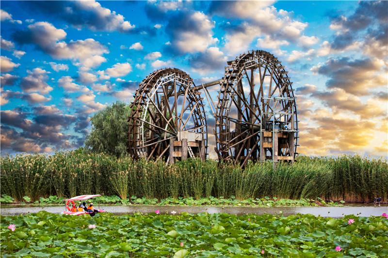 銀川市濕地(包含河流水域)面積531平方公里(80萬畝),占市域土地總面積7.65%,人均濕地面236平方米,是全國的6倍,市區(qū)濕地率達到10.65%,濕地保護率達到78.5%,2018年被評為我國首批“國際濕地城市”。鳴翠湖位于興慶區(qū)掌政鎮(zhèn),總規(guī)劃面積8840畝,是歷史上銀川“七十二連湖”重要組成部分,是中國西部地區(qū)和黃河流域首家國家濕地公園、“國內(nèi)首個立體生態(tài)荒漠化濕地成功修復(fù)力作”、國家水利風(fēng)景區(qū)、國家4A級旅游景區(qū),享有“中國最美濕地公園”“中國生態(tài)保護最佳濕地”等美譽。銀青公路穿湖而過,將其分為南北兩湖,其中:南湖為濕地生態(tài)保護核心區(qū)占地3845畝,只進行濕地保護與恢復(fù)性建設(shè);北湖占地4995畝,進行濕地景觀建設(shè)和濕地生態(tài)旅游項目的開發(fā)經(jīng)營。鳴翠湖湖泊面積占湖區(qū)面積的80%,景區(qū)生物多樣性富集,有維管植物109種、水生浮游植物69種、鳥類97種。湖光瀲滟、蘆葦蕩漾、楊柳依依、水車吱吱、魚翔淺底、百鳥鳴翠,遠望水鷺雙飛起,近看風(fēng)荷一向翻;接天蓮葉無窮碧,映日荷花別樣紅,在我國西北干旱地區(qū)和黃河沖積平原區(qū)域具有典型性和代表性。
