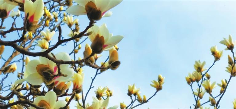 3月10日,記者途經秦州區(qū)自由路玉蘭一條街時欣喜地看到,由東往西走,穿過刻有“秦風在茲”的天水古城牌坊,滿巷漸次盛開的玉蘭花一樹樹玉樹臨風,一朵朵冰清玉潔。平房民居的屋頂上、脊獸斗拱邊,橫橫斜斜“躺臥”著若干膚白肌潤的花朵,借景為鄰靜觀細瞧,人與花似感心意相通,片刻間也能生出不少情趣來。