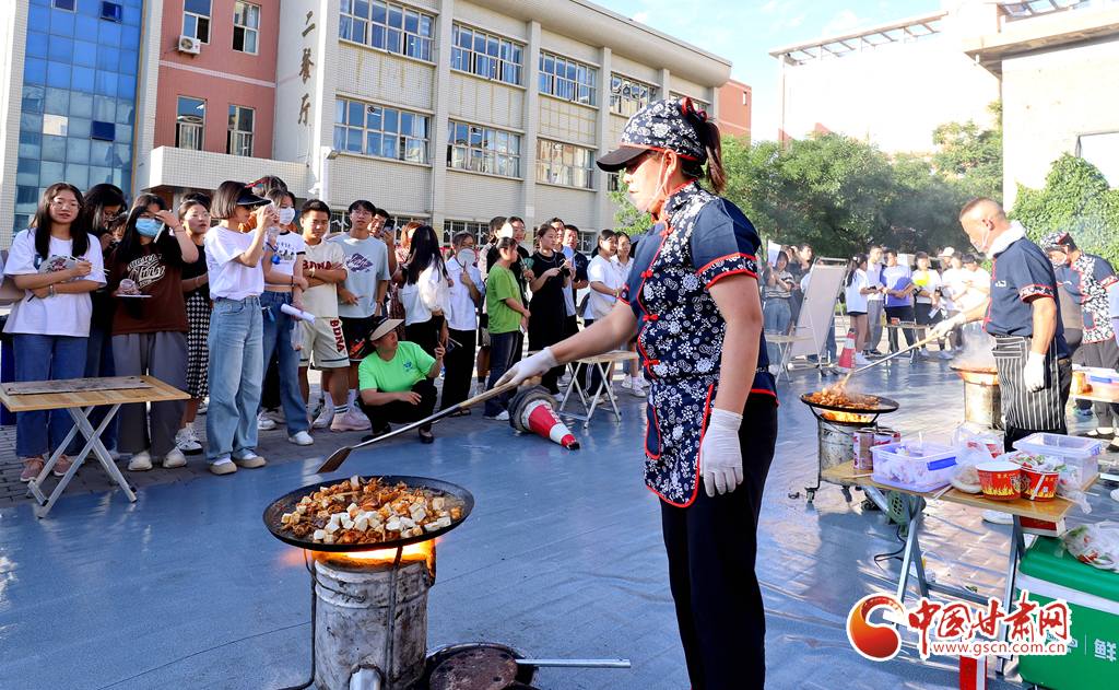 近日,甘肅省張掖市山丹縣“特色小吃進高校”活動在河西學(xué)院火熱進行,“山丹炒撥拉”名小吃的廚師們?yōu)閹熒鷤冎谱髅朗车耐瑫r還教授炒撥拉制作技藝,讓學(xué)子們在在品味美食的同時領(lǐng)略了飲食文化的博大精深。