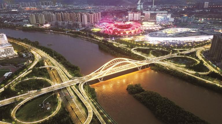 蘭州,不僅是“全國文明城市”“國家園林城市”“中國最具投資吸引力城市”“營商環(huán)境創(chuàng)新城市”“最具文旅投資價值城市”,更成為了國內(nèi)最受歡迎的十大避暑城市之一和游客數(shù)量增長最快的十大“網(wǎng)紅城市”之一。圖為深安大橋和奧體中心、萬達茂美麗夜景。
