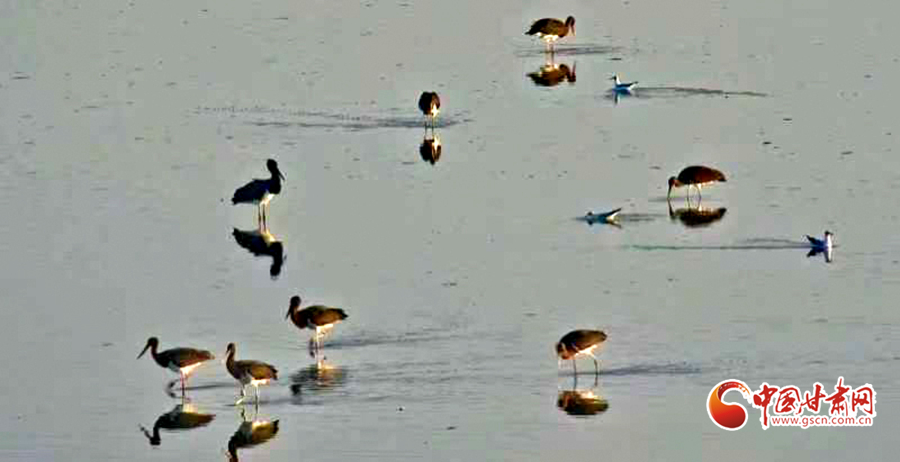 近日,山丹縣濕地保護(hù)站工作人員在開展候鳥監(jiān)測(cè)工作時(shí)發(fā)現(xiàn)14只被稱為“鳥中大熊貓”的黑鸛。