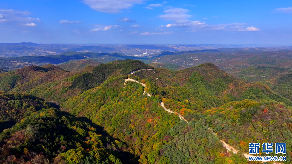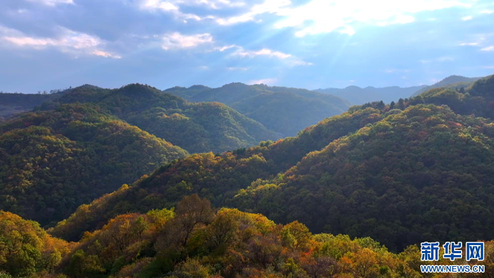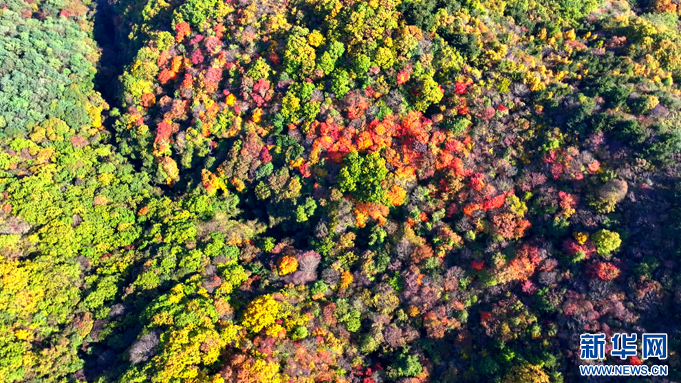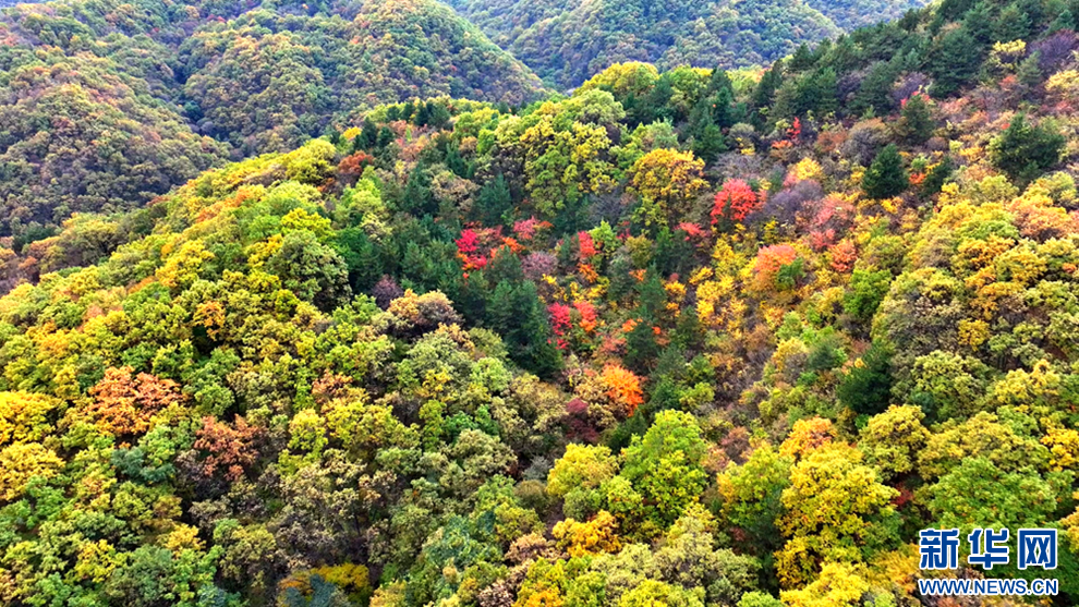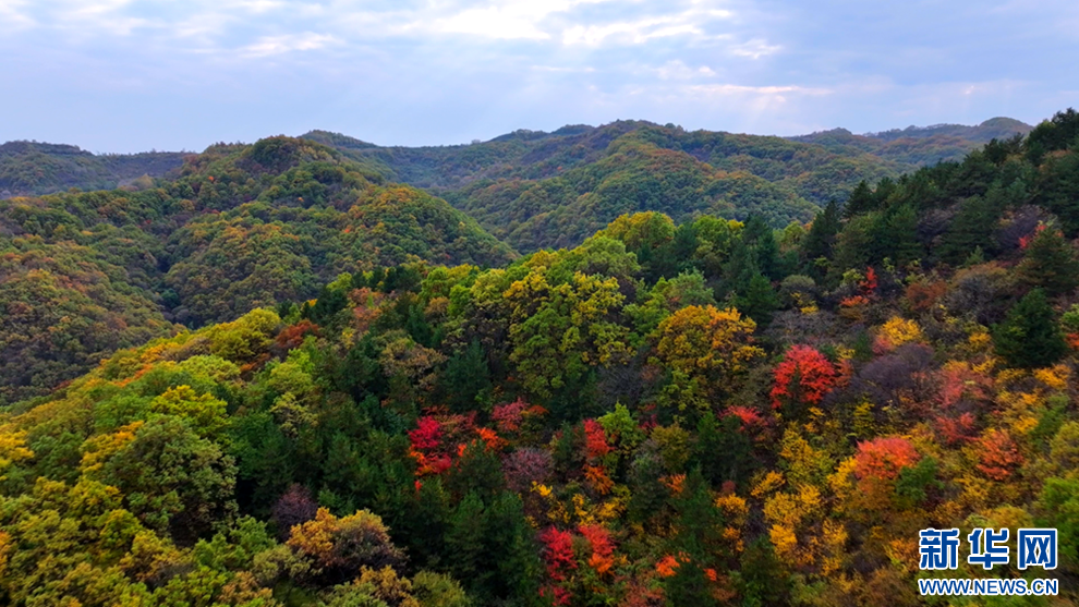 深秋時(shí)節(jié),甘肅省平?jīng)鍪谐缧趴h的唐帽山層林盡染,群山疊彩,勾勒出一幅絢麗多姿的美景圖。(圖片:高亮 文字:關(guān)改琴)