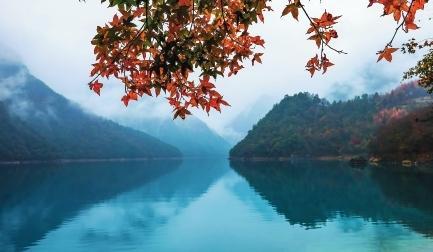 初冬時(shí)節(jié),文縣天池國(guó)家森林公園尚未褪去秋裝。遠(yuǎn)山峰巒疊嶂,層林色彩斑斕,近水沉斂如鏡,林木倒映其間。黃葉悄落,波紋漣漪,云霧時(shí)起,水霧彌漫。初冬的天池,靜美如畫卷。