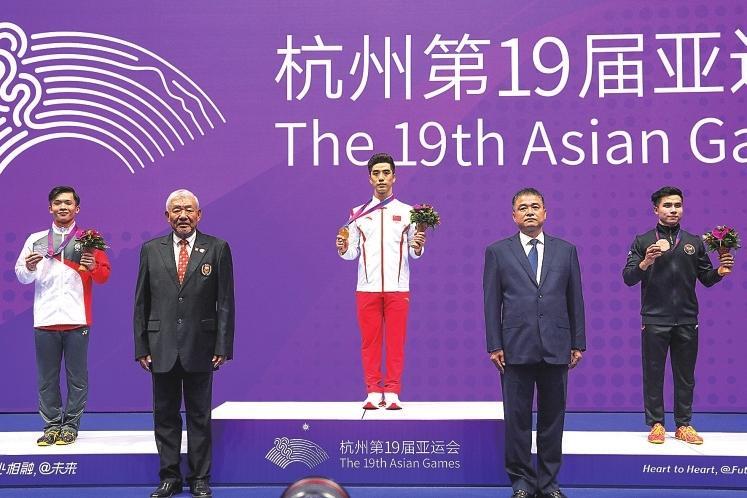 常志昭(中)在杭州亞運會領(lǐng)獎臺上。