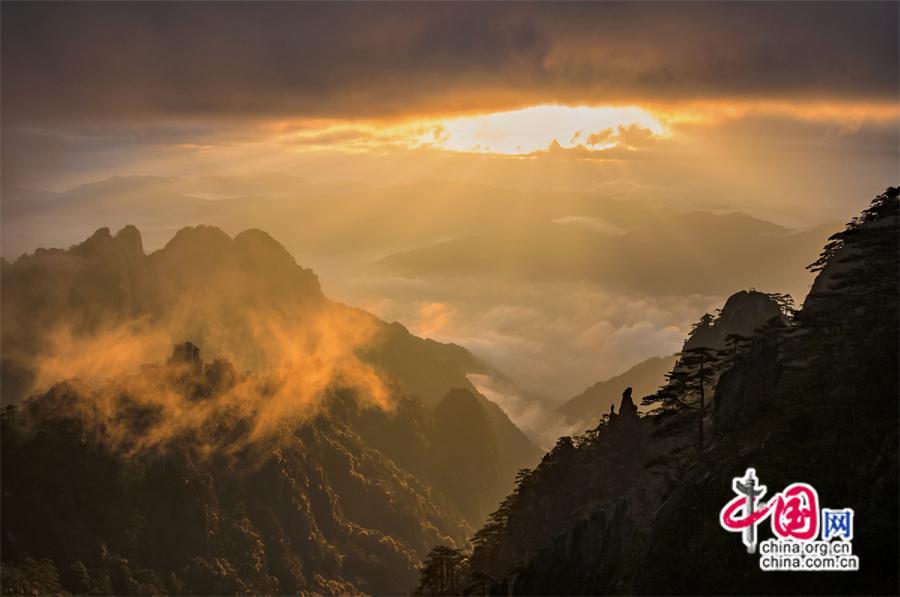 只有一個(gè)黃山:日出霞光盡染 云霧輕舒漫卷