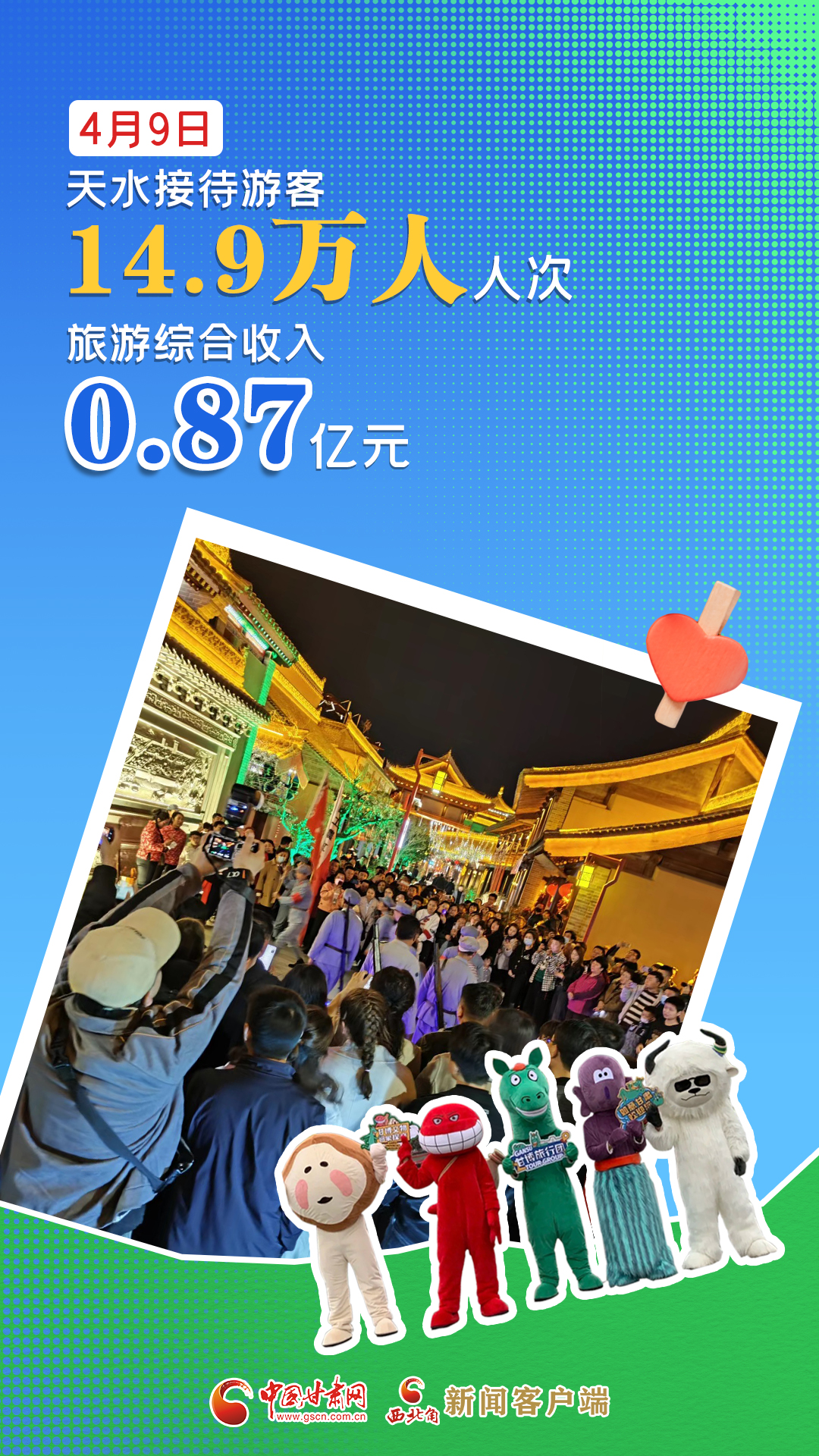 海報(bào)|4月9日,天水市接待游客14.9萬(wàn)人次,實(shí)現(xiàn)旅游綜合收入0.87億元