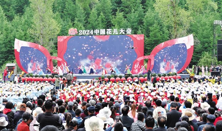 “四月天的花兒會(huì),我們來(lái)到了松鳴巖,輕輕拉住了尕妹的手,漫一首好少年,哎喲——漫一首好少年。五月里的牡丹,河州城里浪一圈,百里長(zhǎng)廊的牡丹開(kāi),尕妹你最嬌艷……”花兒展演在積石山縣大眼睛組合帶來(lái)的《浪河州》中畫(huà)上了句號(hào)。