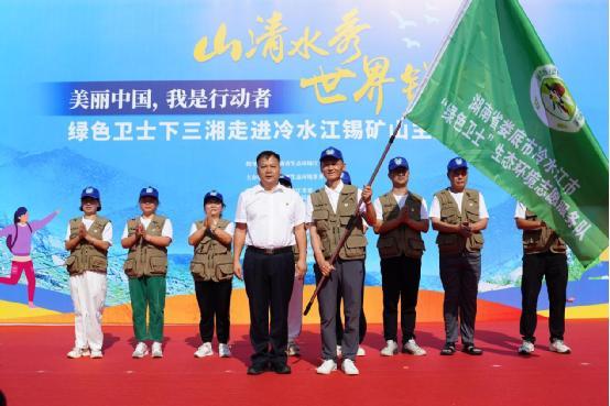 活動(dòng)現(xiàn)場,與會領(lǐng)導(dǎo)還為冷水江綠色衛(wèi)士生態(tài)環(huán)境志愿服務(wù)隊(duì)進(jìn)行了授旗。