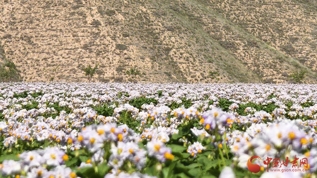 近日,蘭州新區(qū)中通道西側(cè)生態(tài)修復(fù)項目,千畝洋芋花開正盛,曾經(jīng)山溝縱橫的這里呈現(xiàn)出勃勃生機(jī)。