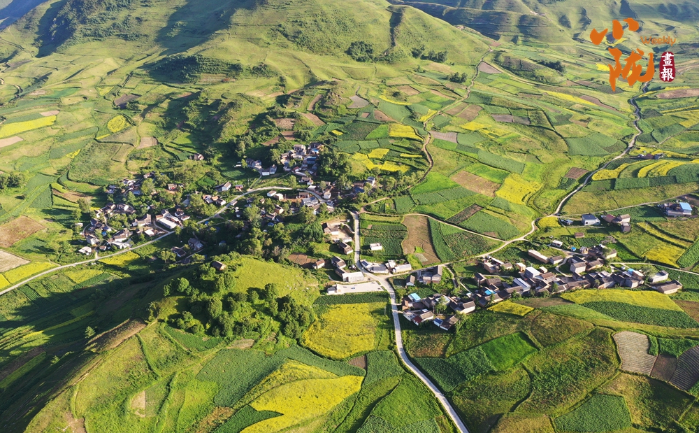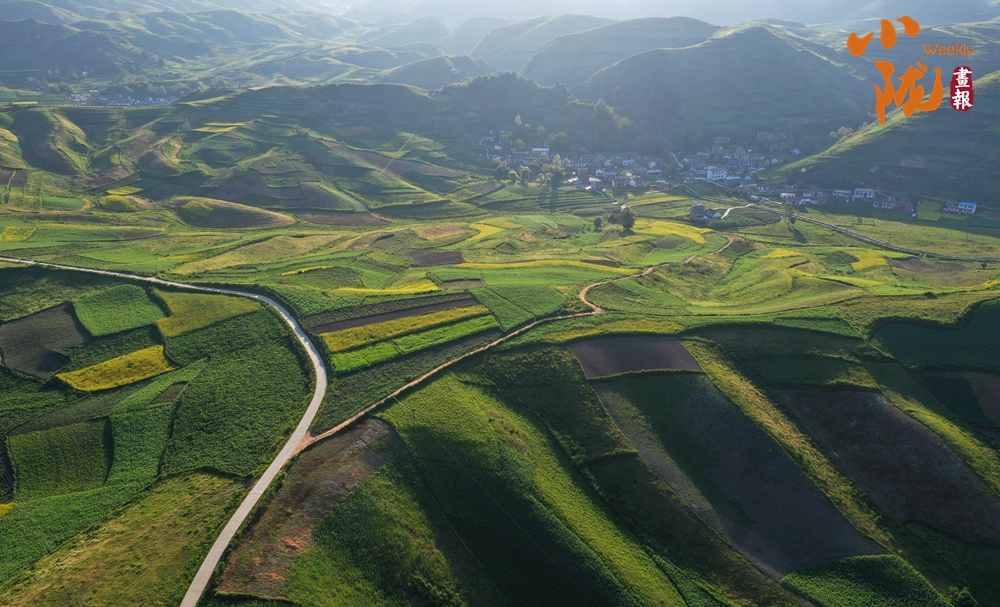 從空中俯瞰,阡陌縱橫與遠(yuǎn)處連綿起伏的青山,錯(cuò)落有致的民居交相呼應(yīng),勾勒出一幅美麗的“田園畫(huà)卷”。