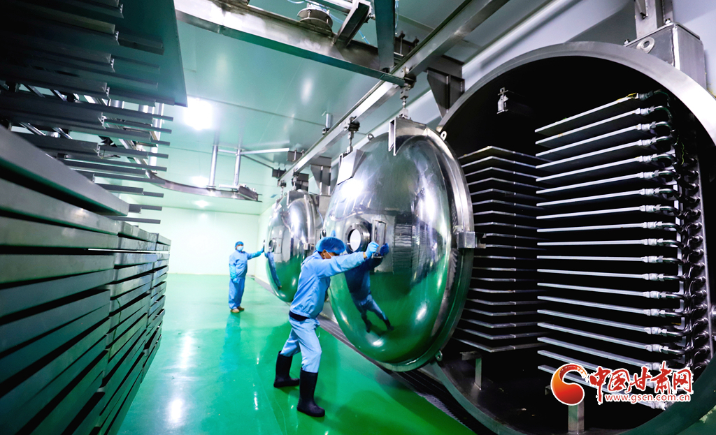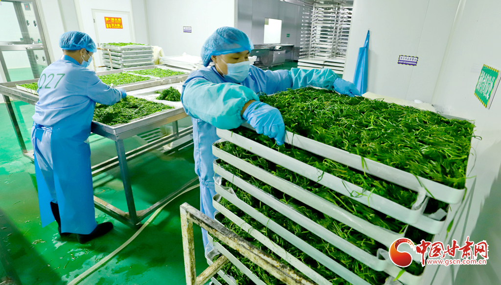 8月8日,臨澤縣沙河鎮(zhèn)一麥苗凍干粉生產(chǎn)線上,工作人員正在進(jìn)行分揀、清洗、高溫漂燙、翻晾裝盤(pán)、凍干研磨等生產(chǎn)工序,完成廣東、福建、上海、浙江等地客商的訂單。