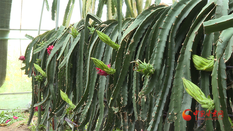 “咱們剛才看到的是從廣西引進的火龍果,它是紅心品種,火龍果的嘗試很成功,現(xiàn)在目前的產(chǎn)量也很不錯,今年正是豐產(chǎn)年。”合作社負責人李隴兵說道。