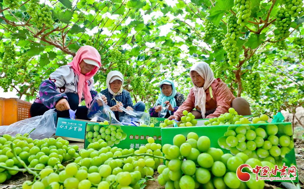8月28日,在高臺(tái)縣南華鎮(zhèn)智號(hào)村1000畝陽光玫瑰葡萄綠色標(biāo)準(zhǔn)化產(chǎn)業(yè)園內(nèi),40多萬斤陽光玫瑰進(jìn)入成熟采摘期,果農(nóng)們正在采摘、分揀、裝箱,準(zhǔn)備發(fā)往浙江、江蘇、新疆、青海、內(nèi)蒙古等地客商的手中。