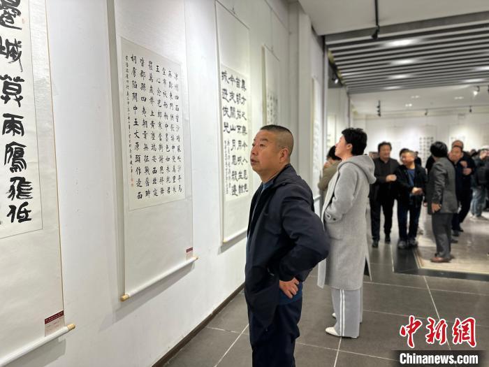 圖為展覽吸引書法愛(ài)好者觀賞。楊娜 攝