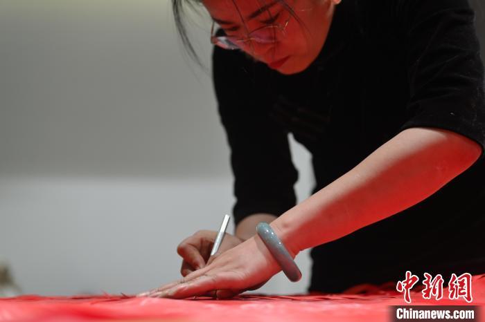 11月23日,甘肅省蘭州市求古書(shū)院內(nèi),剪紙漢服作品《龍鳳呈祥》《戲韻華裳》吸引游人。當(dāng)日,剪紙漢服作品《龍鳳呈祥》《戲韻華裳》經(jīng)過(guò)最后的修剪固定后亮相求古書(shū)院。這兩件作品都來(lái)源于剪紙非遺傳承人楊樹(shù)珍,《龍鳳呈祥》寓意夫妻間比翼雙飛,《戲韻華裳》則將傳統(tǒng)戲曲文化、剪紙文化與漢服文化進(jìn)行了結(jié)合。中新社記者 李亞龍 攝