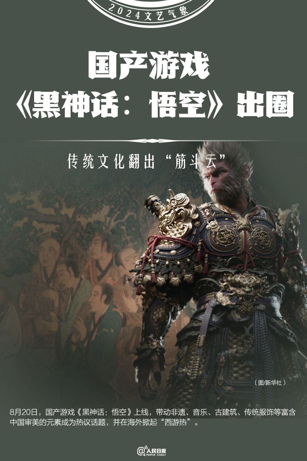 今年8月20日,國產(chǎn)單機游戲《黑神話:悟空》上線,24小時內(nèi)就在全球最大的數(shù)字游戲發(fā)行平臺上賣出超過300萬份,同時在線玩家最高超過222萬,成為該平臺歷史數(shù)據(jù)中排名第一的付費游戲。游戲在海外掀起“西游熱”,不少玩家一邊玩游戲一邊研究《西游記》“補課”,游戲中的非遺音樂、山西古建筑、傳統(tǒng)服飾等富含中國審美的元素也成為熱議話題。今年年底,《黑神話:悟空》斬獲多項國際大獎。