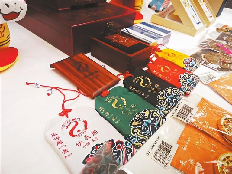 天水伏羲廟的文創(chuàng)產(chǎn)品河洛掛牌也很受歡迎。“掛牌是用天水伏羲廟的側(cè)柏制作的,掛牌正面是太極八卦圖,背面是河圖洛書(shū),側(cè)面是北斗七星,十分精美,寓意美好。”天水市博物館文化產(chǎn)業(yè)部工作人員楊萱慧說(shuō),“我們還特意為掛牌制作了5種顏色的收納包,分別代表‘金、木、水、火、土’,大家可以按自己喜好選購(gòu)收納包來(lái)收納河洛掛牌。”