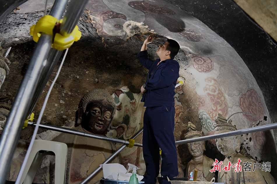 石窟外的時(shí)間流過(guò)千年,加之地處多雨林區(qū),文物保護(hù)變得極為不易,塑像和壁畫容易出現(xiàn)空鼓、開裂、脫色等病害。為保護(hù)好麥積山石窟,他們堅(jiān)守在山野之間,與寂靜洞窟為伴,不斷更新文物保護(hù)方式,守護(hù)著這些珍貴的歷史文化瑰寶。