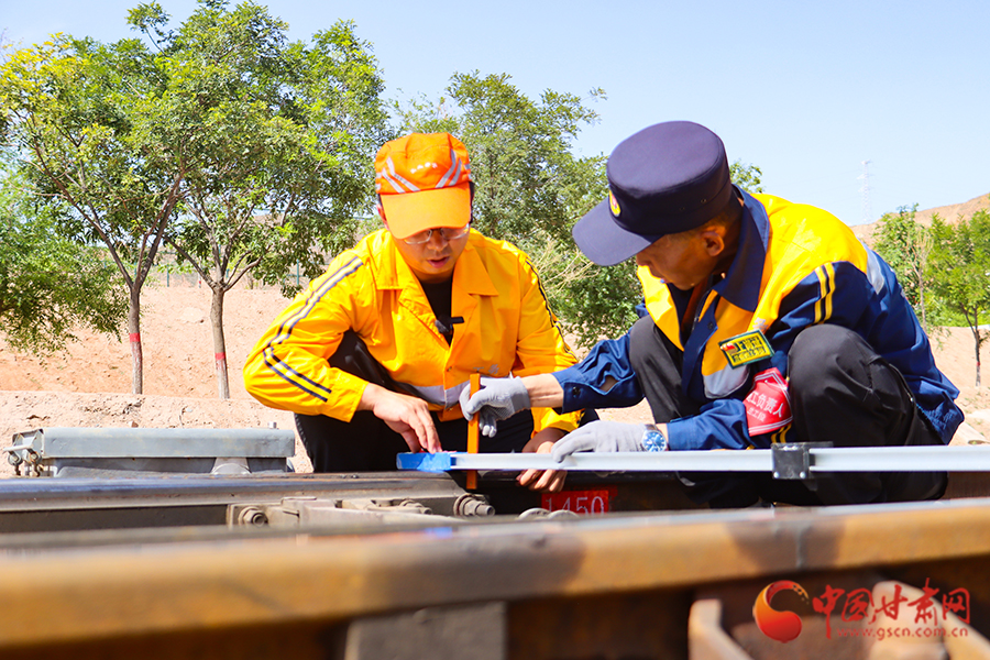 “道岔、絕緣接頭和小半徑曲線是我們?nèi)粘8邷匮膊榈闹刂兄兀绻麢z查不到位,有時候幾毫米都可能影響軌道電路或道岔搬動,進而影響安全運輸,所以必須做到一絲不茍,絕不能讓設備帶‘病’堅守。”在檢查到絕緣接頭和道岔尖軌時他們檢查的格外仔細。