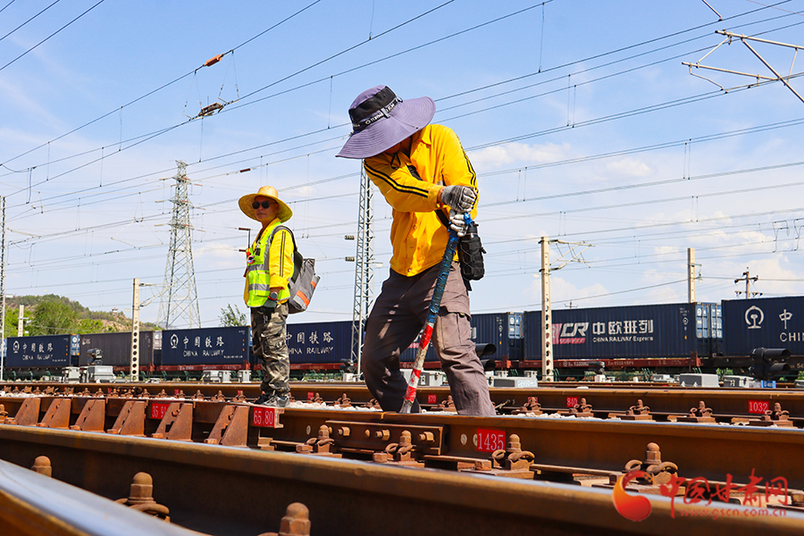 此刻,編組站內(nèi)一輛輛滿載貨物的中歐班列鳴笛啟程,呼嘯而過,駛向祖國的四面八方。正是有了無數(shù)像這樣高溫下堅守的鐵路人,才筑起了鐵路運輸安全的堅固屏障,用汗水澆灌著運輸安全,讓鋼鐵巨龍在“絲路驛站”上始終昂首前行。