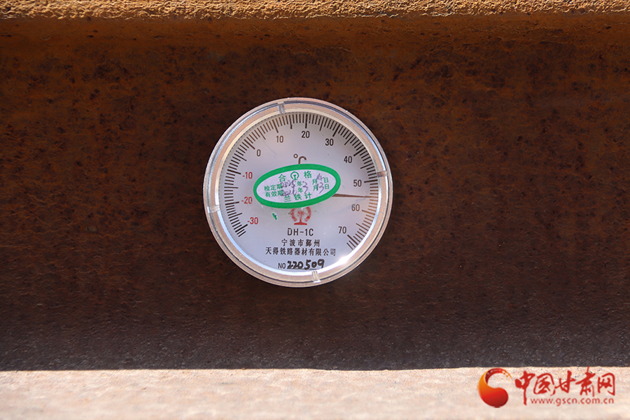 “樊工長,測一下此時的軌溫是多少?”到達蘭州北編組站下行到達場后,劉亞雄一邊擦拭著額頭不斷滾落的汗珠,一邊向樊勇喊道。樊勇熟練地將軌溫計貼在軌腰上,金屬表盤上的指針猶如上了發(fā)條,瞬間直飚半圈定格在54℃!