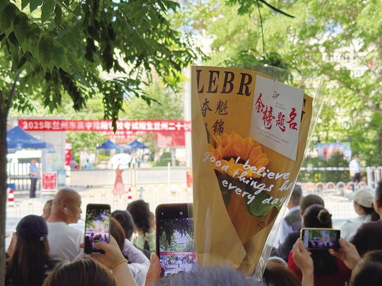 除了親人送考之外,老師們也來助陣了。在蘭州一中校門口,蘭州志成中學的老師們還在不斷叮囑考生們要細致,也預祝他們考出好成績。