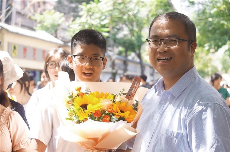 花束也是祝福的首選,“一舉奪魁”的向日葵更是家長們的最愛。在各考點附近的鮮花店里,以向日葵為核心的花束賣得格外好。首科的語文考試結(jié)束后,考生們最先收到的就是鮮花,還有媽媽的擁抱。
