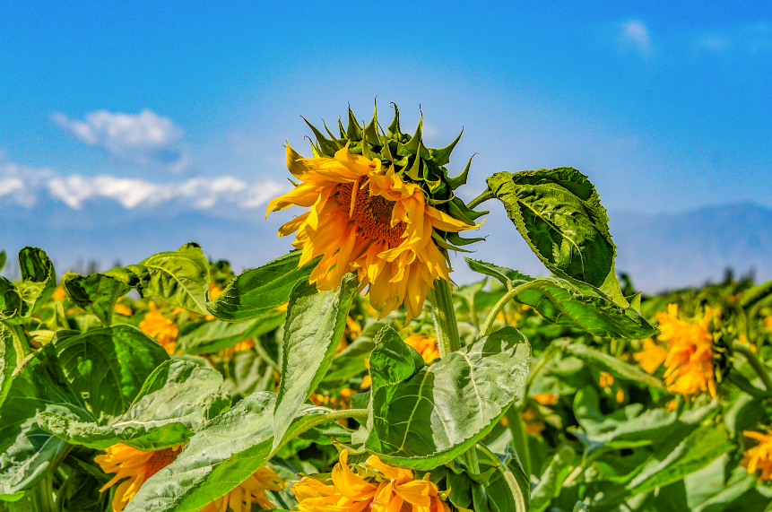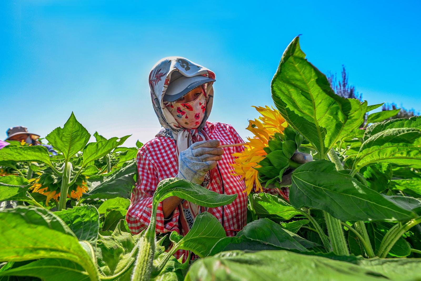 中國甘肅網(wǎng)7月14日訊 據(jù)嘉峪關(guān)日報報道(融媒體中心記者 李巍 攝)近日,嘉峪關(guān)市新城鎮(zhèn)野麻灣村“千畝”制種向日葵迎來盛花期,朵朵花盤匯聚成金色花海,放眼望去,與雪山相融、與藍(lán)天相接,如詩如畫,美不勝收。