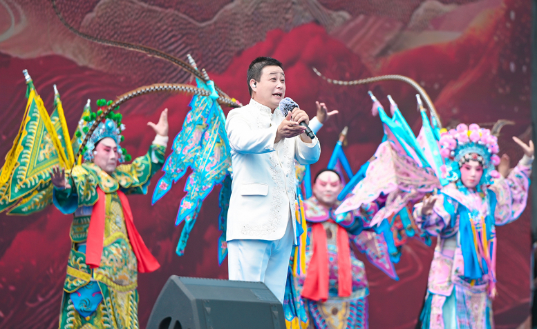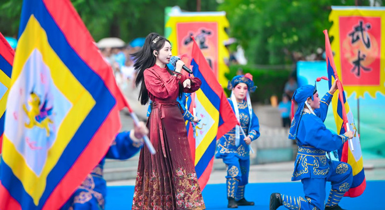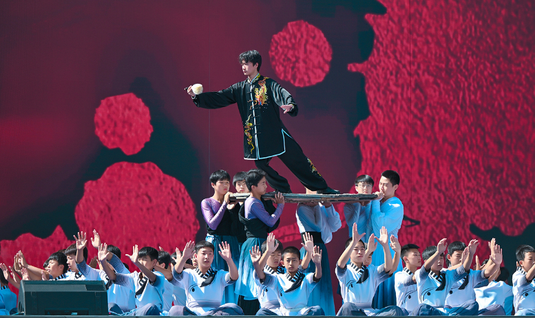 活動(dòng)伊始,開場片《歡迎乘坐崆峒號》以“環(huán)西部火車游·崆峒號”平?jīng)雎糜螌A袨殪`感,通過跨時(shí)空對話串聯(lián)崆峒山古今脈絡(luò),拉開活動(dòng)序幕。現(xiàn)場,街舞與崆峒武術(shù)團(tuán)體合作的《武韻崆峒》展現(xiàn)武術(shù)與現(xiàn)代肢體藝術(shù)新生機(jī);笛子演奏與武術(shù)冠軍聯(lián)袂呈現(xiàn)的《崆音劍影》打造“可聽的武術(shù)”沉浸式體驗(yàn);30人陣容的江蘇武協(xié)女子太極拳團(tuán)體演繹《鶴起崆峒》,詮釋武術(shù)新功用;國風(fēng)歌手與秦腔表演藝術(shù)家合作的《秦韻長歌》,展現(xiàn)“武戲同源”的多元魅力。
