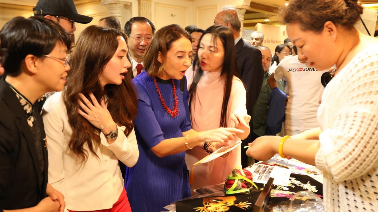 在今年5月18日“茶和天下——甘肅文旅推廣”安曼現(xiàn)場(chǎng),唐彩萍現(xiàn)場(chǎng)制作的麥桿畫以獨(dú)特魅力驚艷全場(chǎng),約旦王妃和加莉拉公主被其精湛的工藝深深吸引,親自上手體驗(yàn)后豎起大拇指稱她是“奇人”。今年6月在“根與魂——甘肅省非遺澳門展演會(huì)”上,唐彩萍制作的麥桿畫《和平鴿》《中國(guó)龍》贏得與會(huì)人士的高度贊賞,澳門特別行政區(qū)政府文化局局長(zhǎng)梁惠敏稱贊其“不同凡響,值得傳承發(fā)揚(yáng)”,并當(dāng)場(chǎng)邀請(qǐng)?zhí)撇势紴榘拈T小朋友傳授麥桿畫的制作方法。