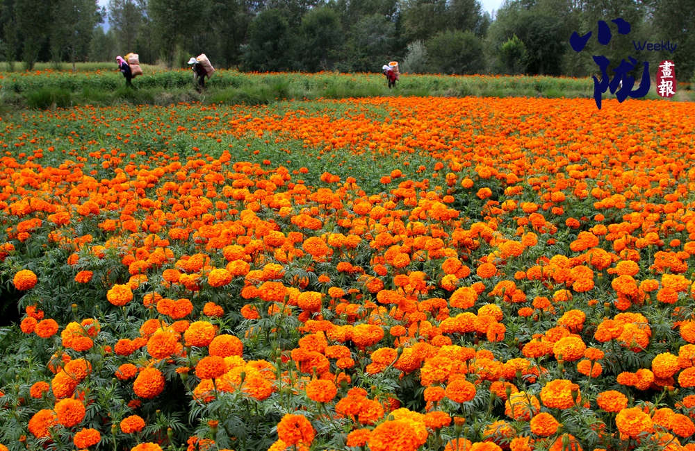 金黃的萬(wàn)壽菊低垂著頭,仿佛是在向大地母親致謝,感謝她給予的滋養(yǎng)與庇護(hù)。農(nóng)人們穿梭其間,臉上洋溢著滿足與幸福的笑容,他們的汗水在這一刻得到了豐厚的回報(bào)。