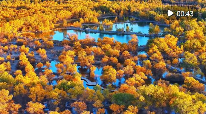 金秋時(shí)節(jié),位于甘肅省酒泉市金塔縣的金塔沙漠胡楊林景區(qū)進(jìn)入最佳觀賞期。湛藍(lán)天空下,一樹樹胡楊在風(fēng)中搖曳生姿,林間湖水如鏡倒映出迷人倩影。游人漫步其間,仿佛置身絢爛畫境。