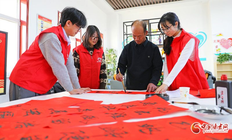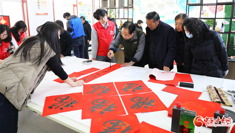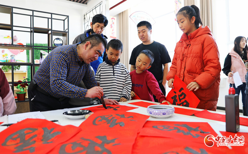 春節(jié)臨近,民樂縣組織群眾文化志愿者服務(wù)隊(duì)開展“翰墨迎春”公益文化活動(dòng),志愿者現(xiàn)場(chǎng)揮毫潑墨書寫春聯(lián),為群眾書寫春聯(lián)和“福”字,讓群眾在家門口享受“文化大餐”,迎接新春佳節(jié)的到來。